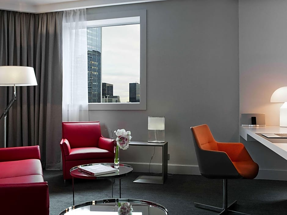房型涵蓋經典房、豪華房、行政特大床房、小型套房與總統套房,亦有像高級公寓(Superior)等寬敞公寓型房型。多數客房提供悅目景觀,包括全景、市景或 La Défense 景觀。特定套房與公寓可接待大型團體,例如高級公寓最多可容納 10 位成人與 6 位兒童。